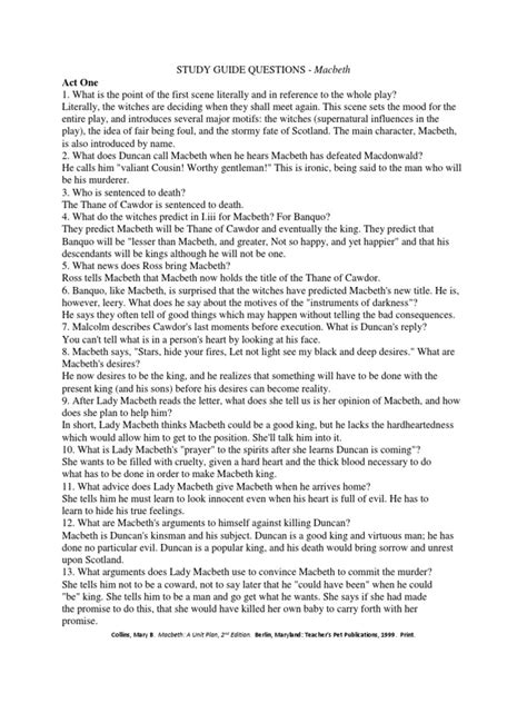 Read Online Macbeth Study Guide Answers Prestwick House PDF